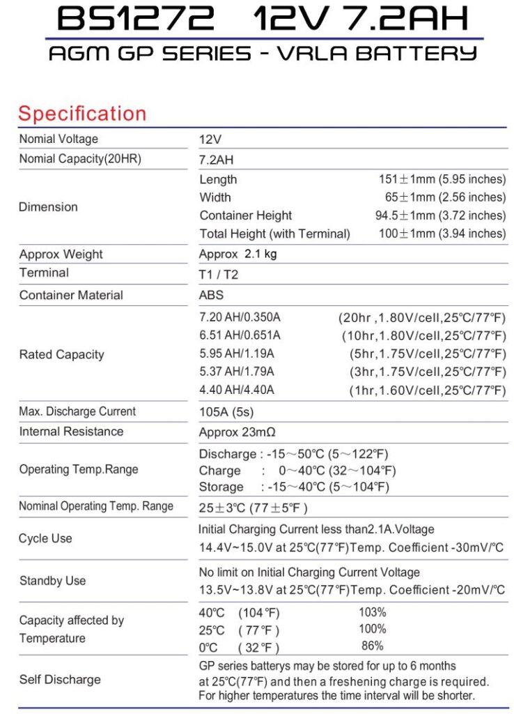 AMG GP Series – VRLA Battery BS1272 12V 7.2AH